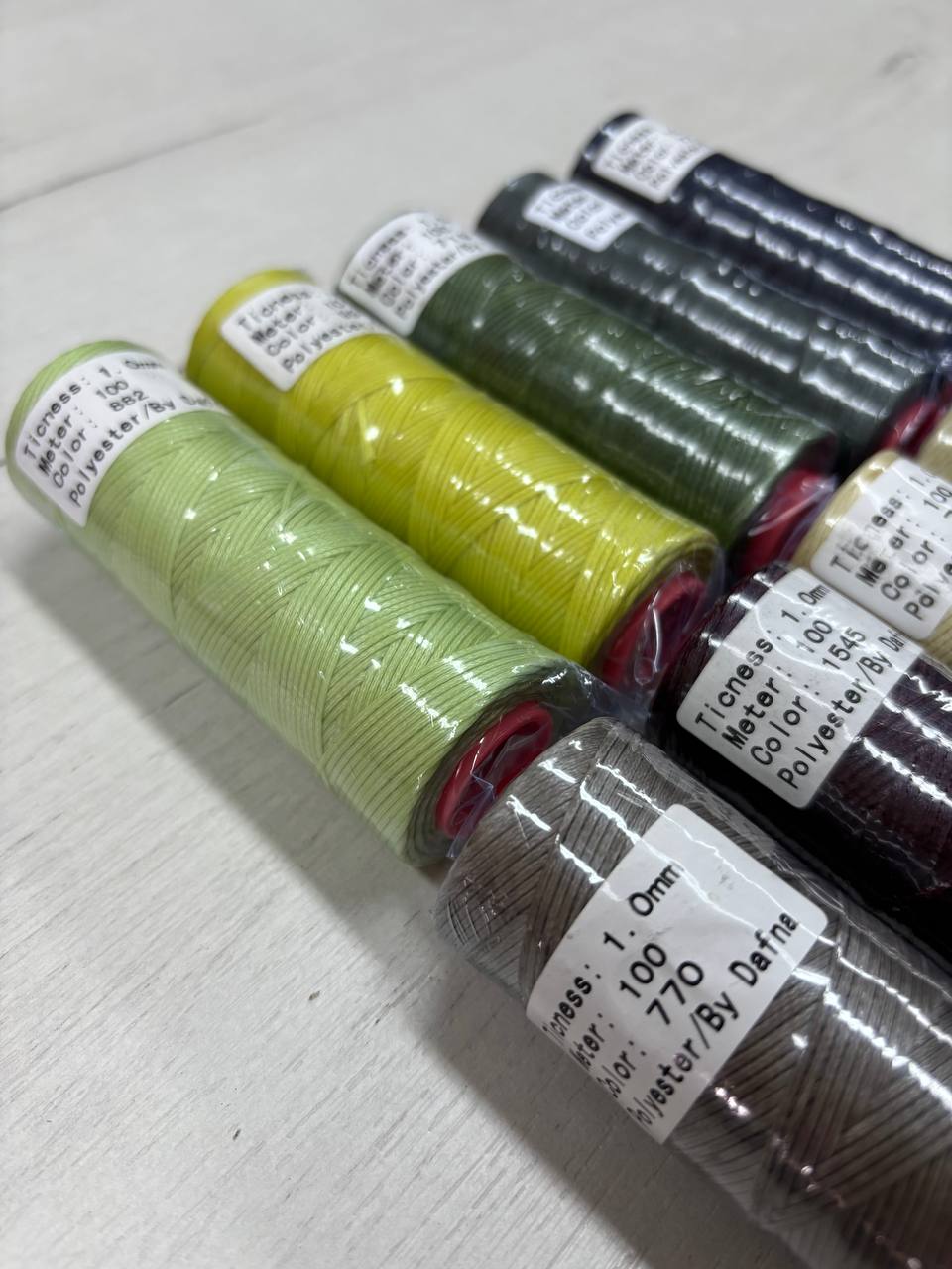 Плоская вощеная нить Dafna с артикулами для удобства заказа. Подходит для работы с кожей, ручного шитья и ремонта изделий. Удобна в использовании, помогает делать прочный и аккуратный шов. Чёрный и белый цвет также имеется в наличии. Характеристики: — толщина: 1.0 мм — намотка: 100 м — цвета: уточняйте по артикулу Цена: 7 бел. руб/шт.
